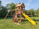 Детям постарше безусловно понравится яркая двухволновая горка со скатом 2.7 метра. А для активных и подвижных в этой площадке предусмотрен рукоход с удобным входом.