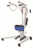 Снятие инвалидного кресла-коляски с подъёмника рекомендуется выполнять на ровной площадке. Для этого электропитание бортовой сети лестничного подъёмника должно быть отключено: светодиодный индикатор не должен светиться. Затем потребуется наклонить подъёмник вперёд так, чтобы передние колёса коляски стояли на поверхности площадки. Удерживая подъёмник одной рукой в этом положении, вывести из зацепления со стойкой спинки кресла-коляски один захват фиксатора.